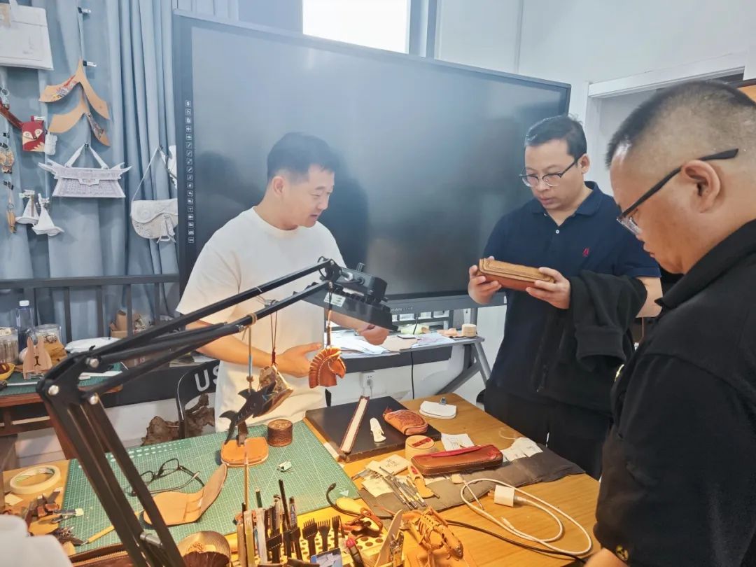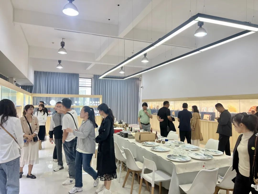 随后,访问团深入各个大师工作室和理实一体化实训室,近距离观摩师生们的创作过程,他们与正在创作的师生们深入交流,用心了解不同作品的精湛制作技巧和别具一格的创意理念。学院的老师们还为大家详细介绍了工艺美术系的专业设置、课程体系、人才培养模式以及产教融合发展等情况,使玛纳斯县青年访问团一行对学院的办学理念和办学方向有了更全面、深入的认识。