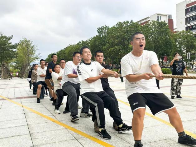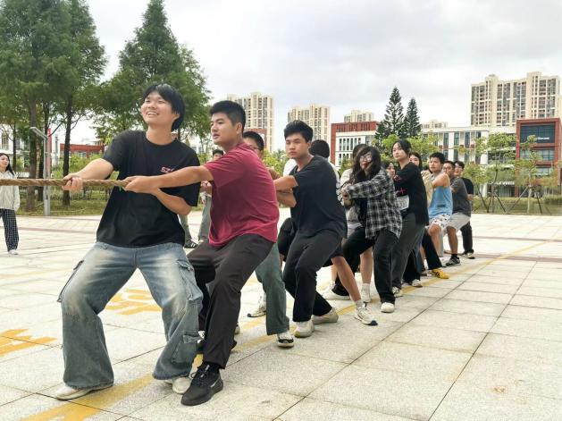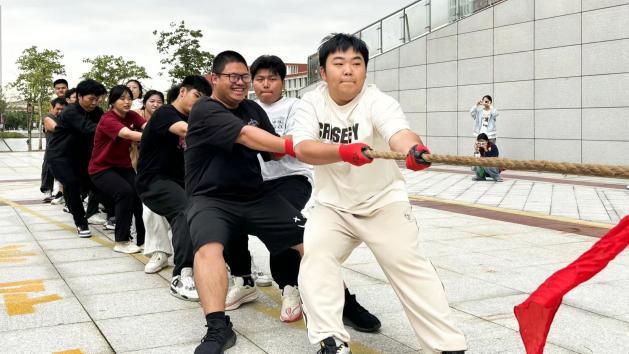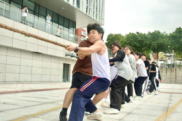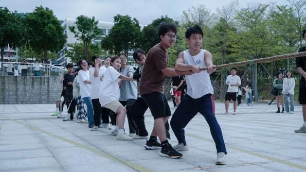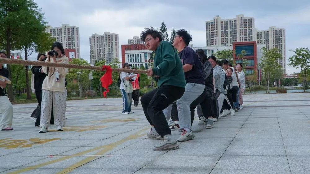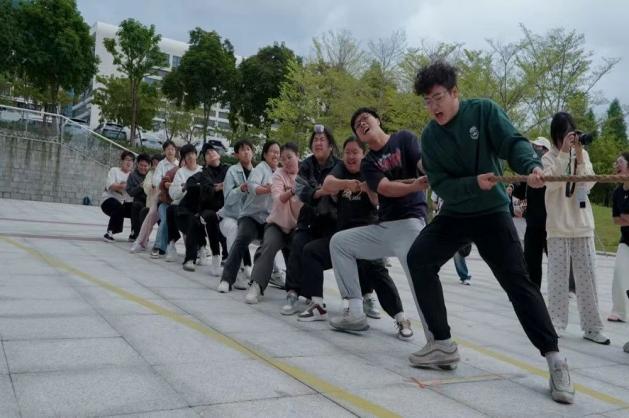图书馆前的空地上也上演着一场力量与意志的较量——拔河比赛。下午16:00,参赛选手们紧握长绳,严阵以待。
