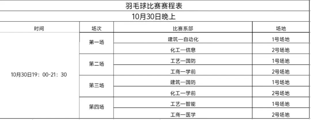 请各位领队带羽毛球比赛选手于晚上6:30前集合检录