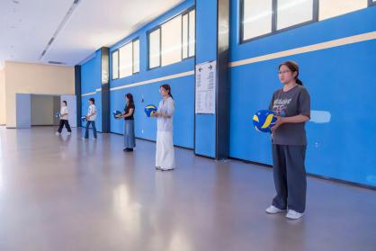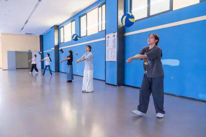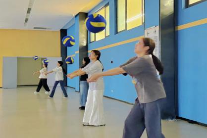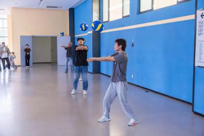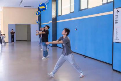 生命不息,运动不止!10 月 30 日下午,体育馆东门一楼如火如荼地进行着新生体育节气排球垫球比赛。现场气氛热烈,选手们全神贯注,严阵以待。随着一声令下,气排球在空中上下跳动,选手们手法娴熟,或蹲或站,巧妙地控制着垫球节奏。