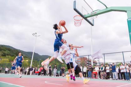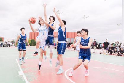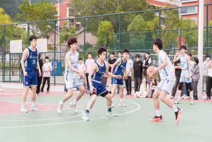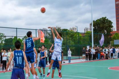 篮球刚一触地,双方队伍便迅速进入状态,展开了一场激烈的对决。赛场上,双方球员们凭借出色的个人技术和默契的团队配合,多次上演突破上篮得分、三分远投等精彩好戏,攻防节奏紧凑,比赛高潮迭起,力量与技巧在每一次对抗中完美融合。每一次精彩的过人、每一次精准的投篮,都赢得了观众席上雷鸣般的掌声,观战的同学们情绪高涨,不断为自己心仪的球队加油鼓劲,锣鼓声、欢呼声、助威声不绝于耳,整个赛场沉浸在一片激动人心的氛围之中。