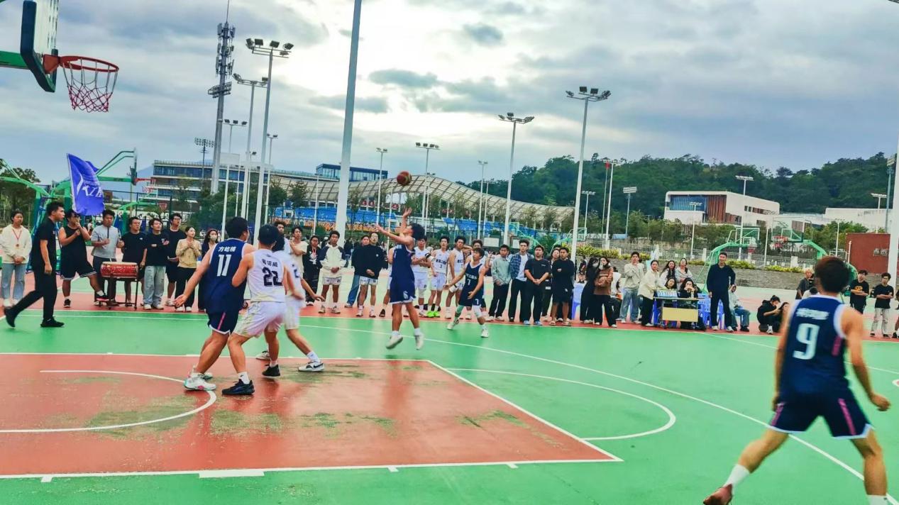 10 月 30 日下午,伴随着裁判员的一声哨响,校园灯光篮球场瞬间被点燃,新生体育节篮球赛最后一轮小组赛激情开打。