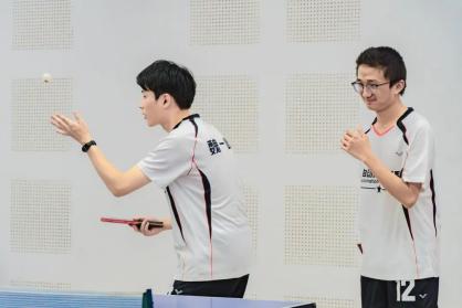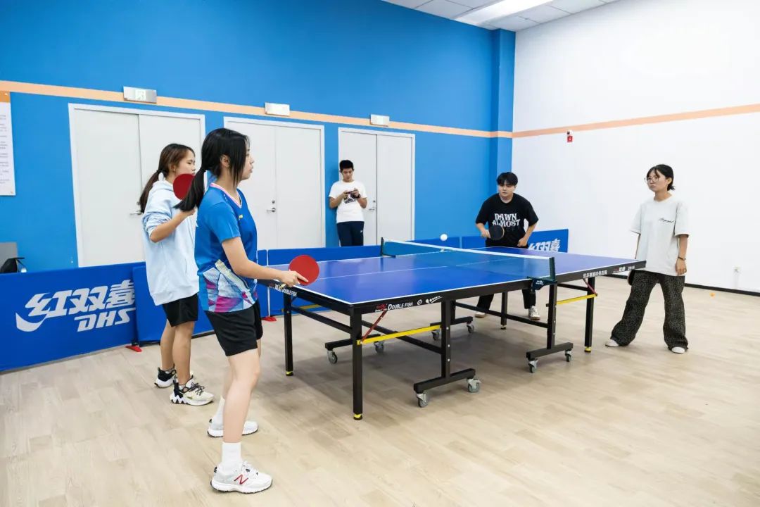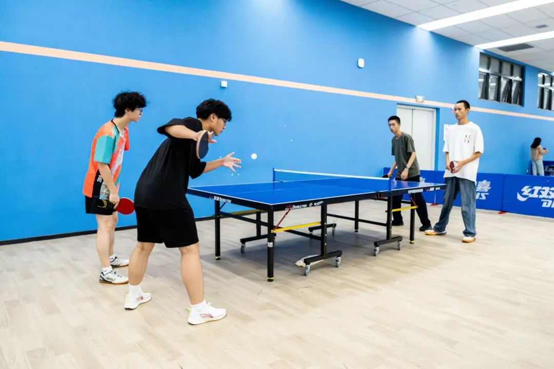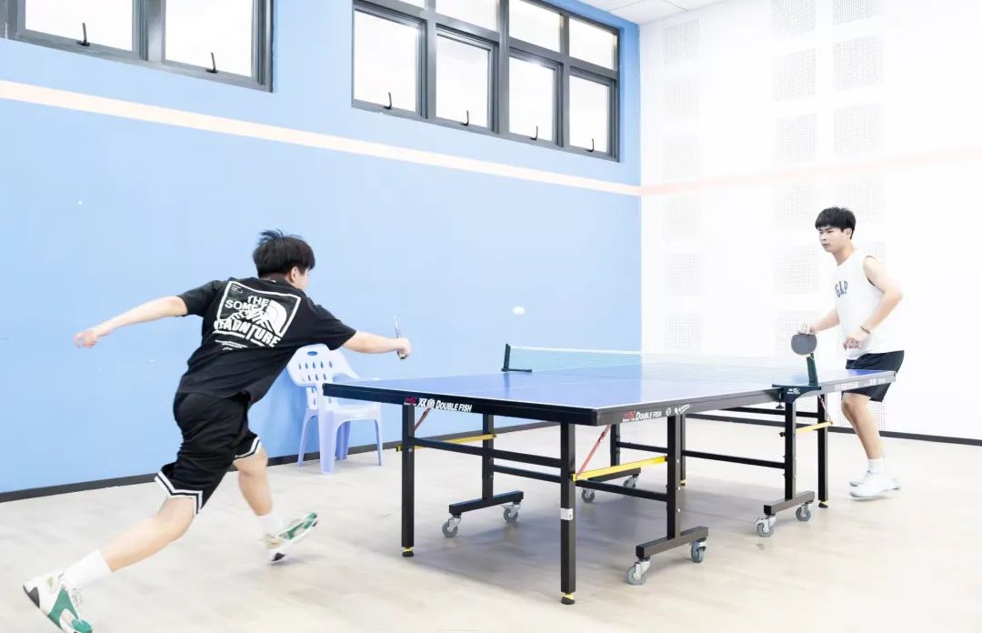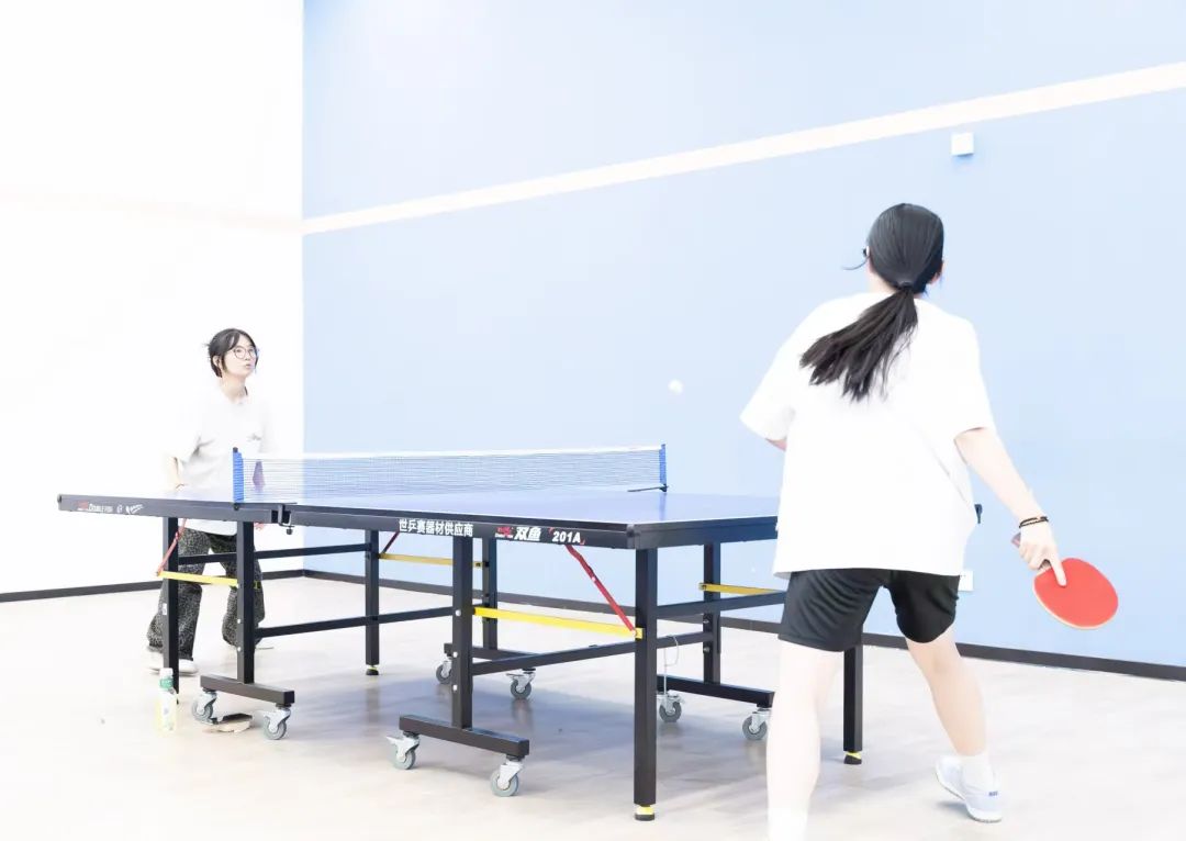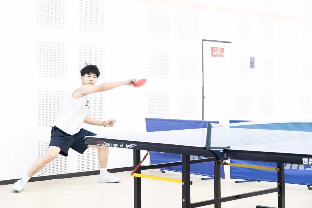 判断球的落点,瞬间做出决策,双方选手凭借精湛的个人技艺和默契的团队配合,多次上演快攻得分、巧妙发球等精彩瞬间,攻防转换迅速,比赛节奏紧凑,速度与技巧在每一次交锋中完美展现。这是乒乓球选手的一门默契和智慧,每一个回合都是他们战斗的见证,每一次精准的扣杀、每一次巧妙的发球,都赢得了观众席上如潮般的掌声,观战的同学们情绪高涨,不断为自己支持的队伍呐喊助威,加油声、欢呼声此起彼伏,整个赛场沉浸在一片热烈而紧张的氛围之中。