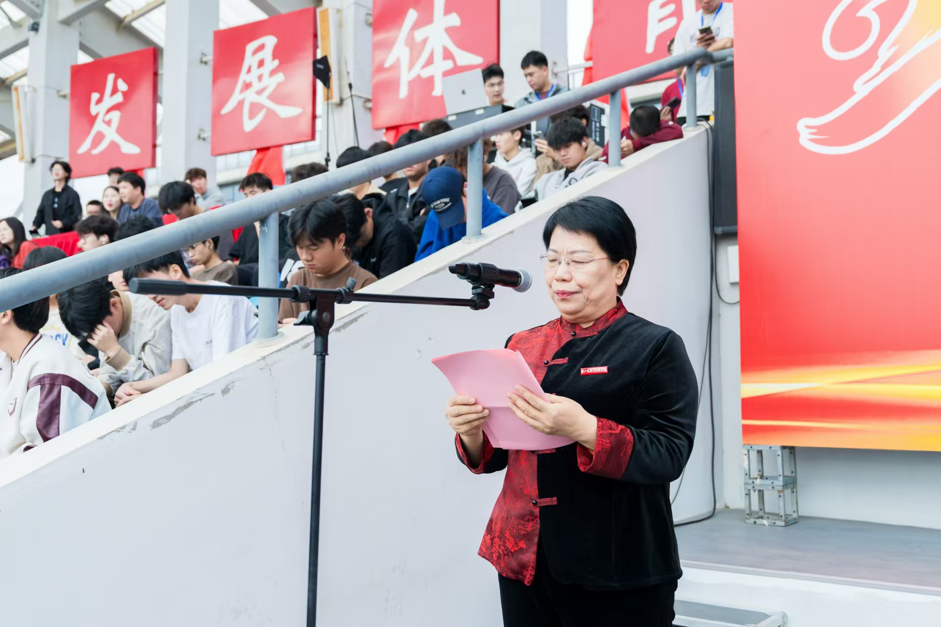 许冬红院长发表了热情洋溢的致辞,她表示,多年来,学院坚定不移贯彻党中央关于体育的重要决策部署,把体育工作摆在“五育并举”的重要位置,大力弘扬“健康第一”的教育理念,在“以体育人”的道路上持续深耕。希望同学们传承中华体育精神,赛出风格、赛出水平。希望同学们秉承优良道德风尚,团结协作、增进友谊。希望同学们不断磨练意志、勇往直前,取得优异成绩。