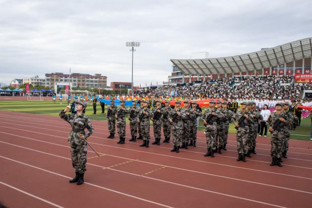 气宇轩扬的国旗队、院旗队,依次入场,步伐整齐,精神抖擞。匠心独运的各系方阵紧随其后,展现出朝气蓬勃的精神面貌。