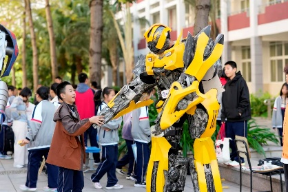 活动中,志愿者们向参观的中学生们热情讲解展区内的展品,协助他们参加体验式的科普教育活动。各种机器人的精彩展示,引来大家阵阵欢呼。“大黄蜂”和“擎天柱”则热情的与同学们“打成一片”,大家纷纷与之合照。