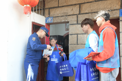 活动中,湄职院建筑工程系的师生志愿者和消防大队一起走访生活在萝苜田的街坊邻居,向街坊邻居们宣传消防知识和在家中如何注意防火知识以及带来消防宣传大礼包。
