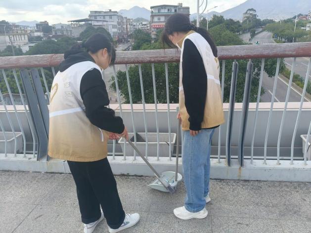 此次清扫天桥的活动意义非凡。一方面,它切实改善了天桥的卫生条件,让同学们的出行更加舒心;另一方面,其蕴含的价值远超于表面的清洁工作,它如同一座灯塔,传递出积极的社会正能量,在学们心中种下环保意识与责任感的种子,并不断生根发芽。