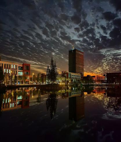 夜幕低垂时又悄悄收藏起星辰