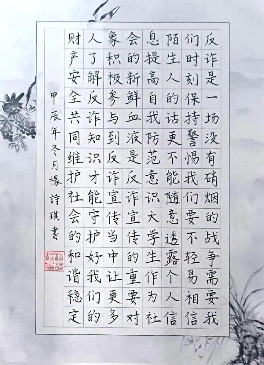 为深入贯彻落实习近平总书记重要指示精神,按照全国、中央、省、市关于打击治理电信网络诈骗工作安排部署及要求,营造“全民反诈、全社会反诈在行动”浓厚氛围,今年11月,湄洲湾职业技术学院联合涵江区联席办围绕学院高质量平安校园创建工作目标,在全院开展“警惕诈骗新手法,不做电诈工具人”主题反诈创作大赛活动,激发大学生关注社会问题,积极参与反诈宣传活动。