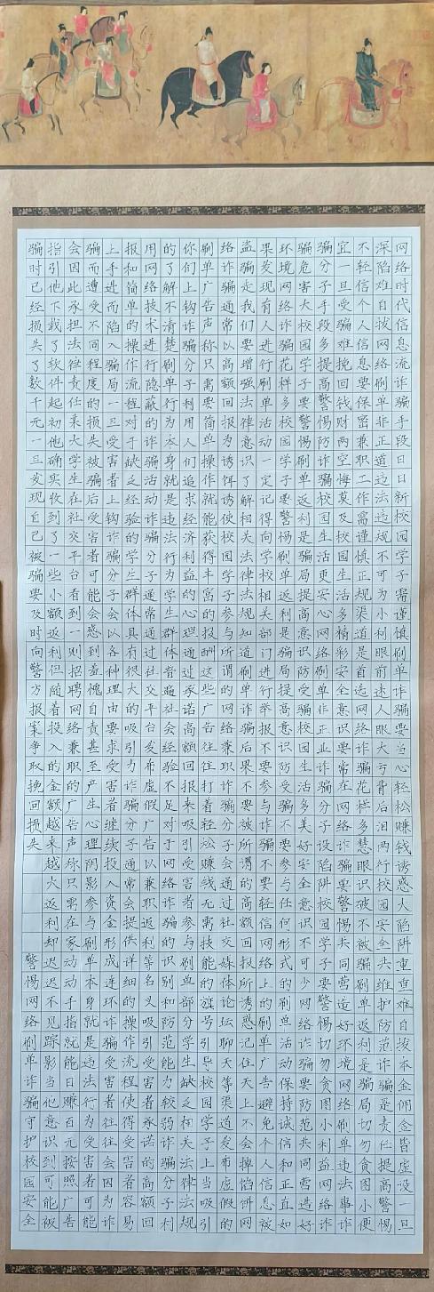 截至12月2日,共征集到反诈作品190幅,集中展示了学院大学生的创新能力、审美水平及对反诈知识的精确掌握,充分体现当代大学生的社会责任感。12月6日,警•院协作组织评选,有95幅作品将进入展区,有41幅作品(书法类作品11幅、绘画类作品10幅、艺术设计类作品10幅、视频类作品10幅)进入各类作品一二三等奖排名争夺赛。