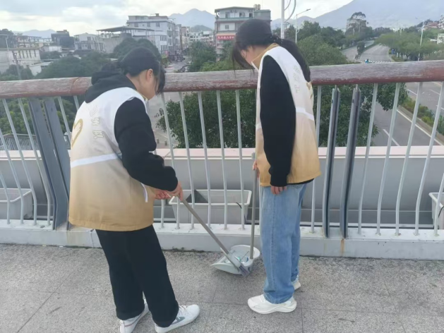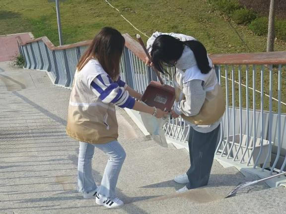 其中,有一项志愿服务活动他们坚持了很久——每周二下午组织志愿者们开展湄职院天桥清扫志愿服务,将这份公益热情融入日常,为美丽湄园与社会搭建起了一条“心桥”,为校园周边环境的美化添砖加瓦。
