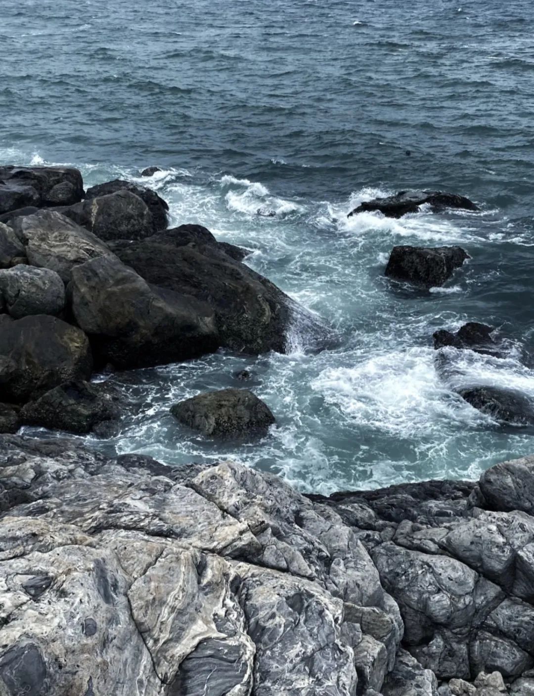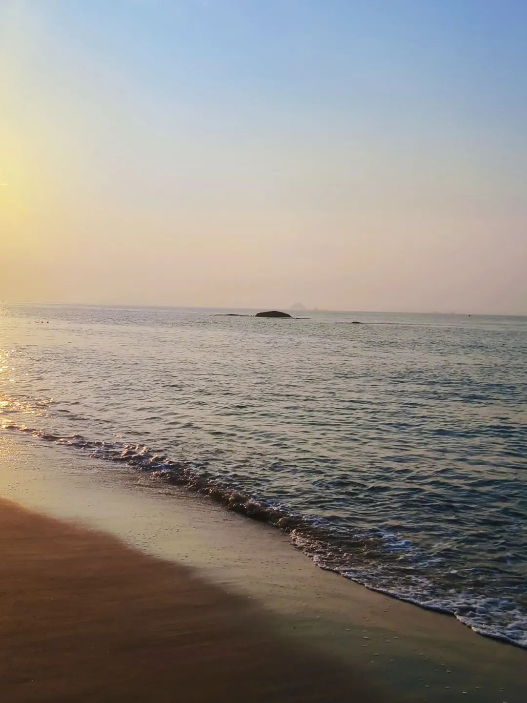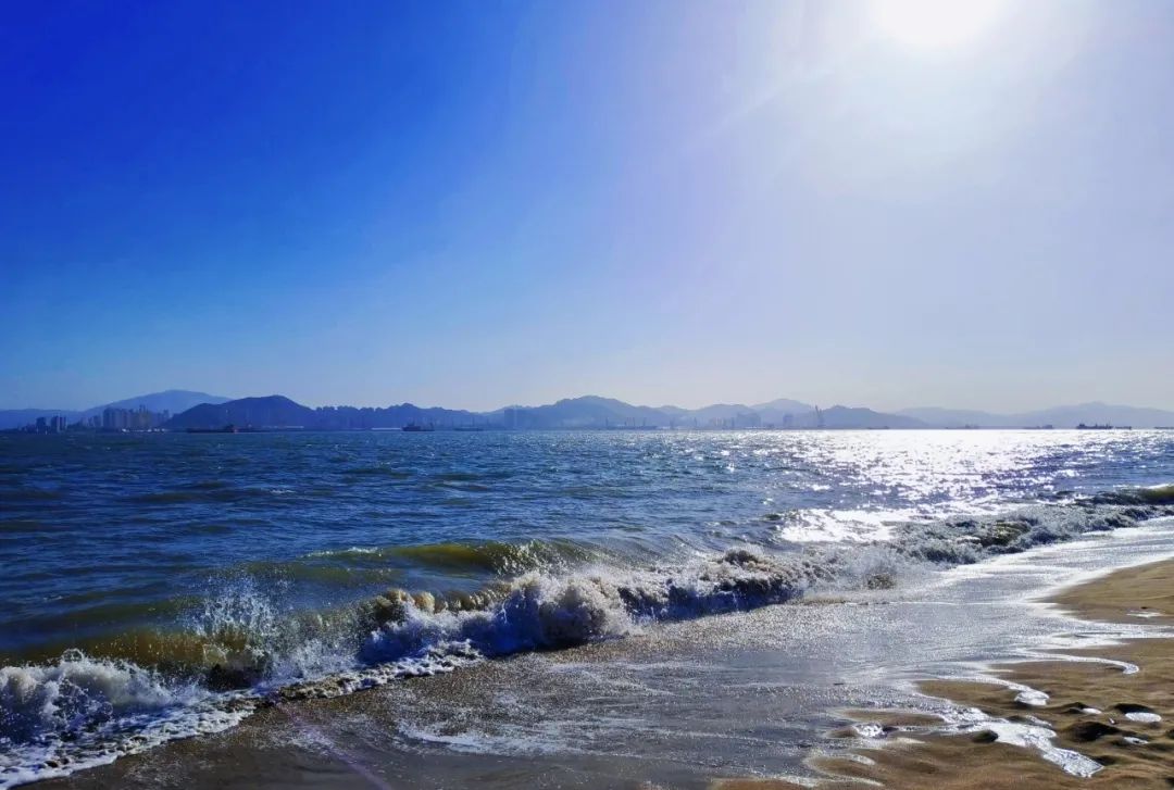 坐在海边吹吹风偶尔有浪花扑上来