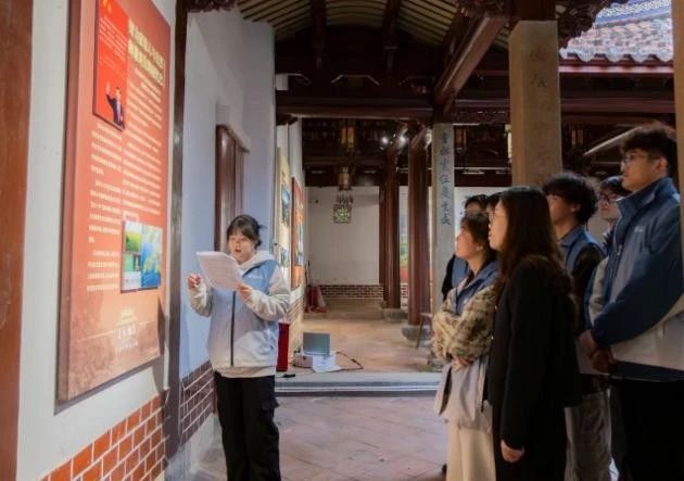 “智行”实践小队在太和庙门口集合完毕后,由讲解员带领同学们了解太和庙的历史。馆内设有宣传面版,展呈了太和庙历史、莆田市生态文明建设成果(木兰溪、湄洲岛、东圳水库等)以及习近平生态文明思想等内容。也充分讲述习近平总书记在闽工作期间亲自推动木兰溪综合治理的生动实践和莆田生态文明治理故事,推动习近平生态文明思想更加深入人心。