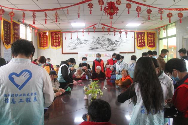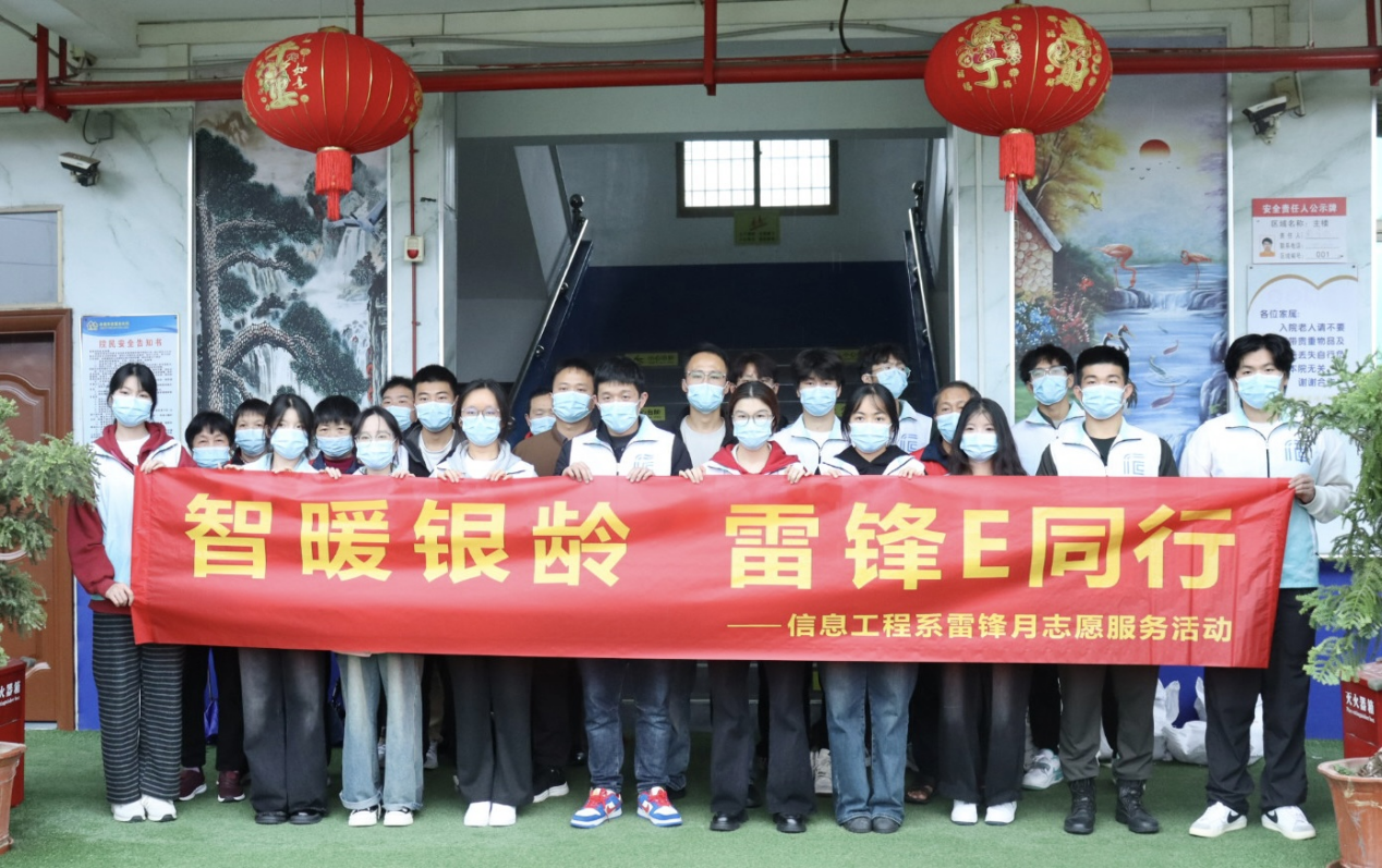 三月春风携暖意,志愿服务正当时。为弘扬雷锋精神,传承中华民族尊老敬老的传统美德,3月4日下午,信息工程系师生志愿服务队走进涵江区幸福养老院,开展"智暖银龄 雷锋E同行"主题实践活动。21名志愿者依托专业特长,通过文娱互动、手工教学等多元化形式,为老人送去春日温暖,展现青年学子的责任担当。