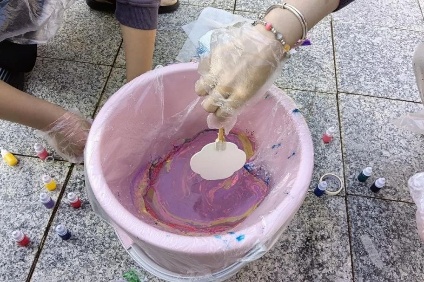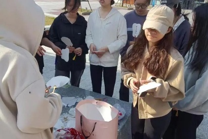 3月22日,纸上花手工创意协会在荔园餐厅前开展漆扇制作活动。社团成员将颜料滴入水中,晕染出独特纹理,再制作出独一无二的漆扇。大家用创意与巧思,让非遗漆扇的魅力在校园中熠熠生辉。