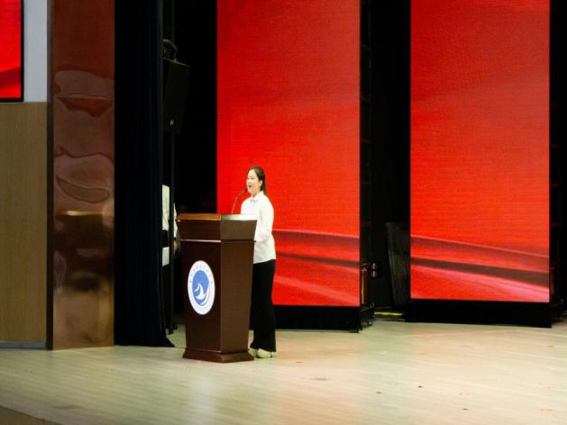 集中入团仪式在激昂的团歌中圆满结束。随后,马克思主义学院蔡松怡老师以“赓续五四薪火,争做时代新人”为主题,为同学们讲授入团第一课。她结合党史团史,生动阐释五四精神的新时代内涵,引导团员青年厚植家国情怀,树立远大理想,号召青年团员将爱国情、强国志转化为报国行,为同学们带来了一场思想的盛宴。
