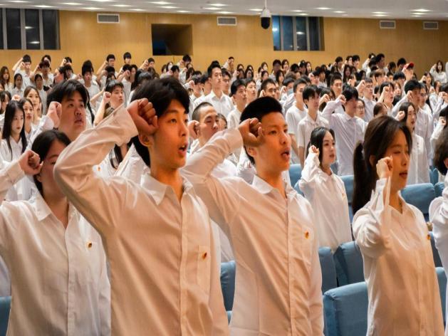 化工系新团员代表滕杨珍以“从信仰到行动”为主题发言,承诺将牢记团员身份,以团徽为镜、以校训为尺,努力成长为有理想、敢担当的青年先锋。医学系老团员代表刘相兰结合自身经历,分享了自己作为团员的成长感悟,号召全体团员立足专业、服务社会,在志愿服务和社会实践中践行“强国有我”的青春誓言。