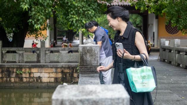随后踏入春晖木雕艺术馆,国家级非遗传承人郑春辉的《千里江山图》木雕巨作赫然眼前——6.3米长的檀香木上,层峦叠嶂以精微透雕技法跃然而出。当学徒现场演示“方寸乾坤”的刻刀绝技时,台湾营员忍不住轻触木纹:“每道刀痕都是与历史的对话。”