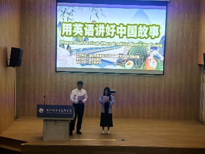 5月27日,我院基础教育学院外语教研室主办、追逐英语社承办、古今游学社协办的端午主题英语演讲活动在学前楼南101举行。参赛选手围绕端午历史渊源、习俗等展开英语演讲,部分选手结合视频“云游”家乡龙舟赛,以英语解说传递端午文化。活动实现文化传承与英语学习结合,为爱好者提供展示平台,助力端午文化以创新形式走向国际。