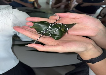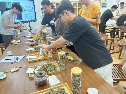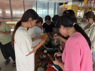 5月27日,我院工艺美术系、茶艺社与“一站式”学生社区在工艺楼401教室联合举办“茶香端午,巧手制囊”校园茶会。活动现场布置雅致,师生通过限时品鉴三款乌龙茶,参与乌龙茶知识抢答,并在老师指导下用布料与天然香料亲手缝制端午香囊。教室内茶香与艾草香交织,营造出浓厚节日氛围。此次活动让师生沉浸式感受传统文化魅力,助力非遗传承,呼吁青年学子守护、传承、践行中华文化。