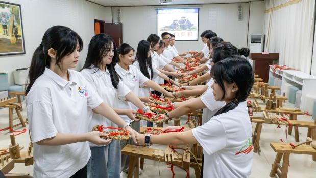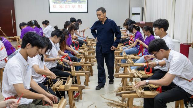 夜幕降临,王陶陶老师以"草鞋"为媒,带领成员们回溯红军时期的艰苦奋斗。从草鞋的历史演变到其承载的军民鱼水情,成员们在亲手编织中体会"草鞋精神"的深刻内涵。与闽江师范高等专科学校互赠草鞋的环节,更让这份精神成为联结青年学子的红色纽带。