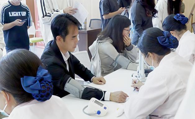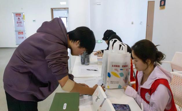 活动现场分为填表区、体检区、采血区和休息区,流程清晰、秩序井然。同学们认真填写献血登记表,一笔一划间是承诺更是担当;医护人员细致询问健康状况,志愿者们暖心引导,整个流程严谨中透着温情。