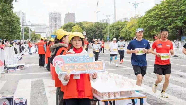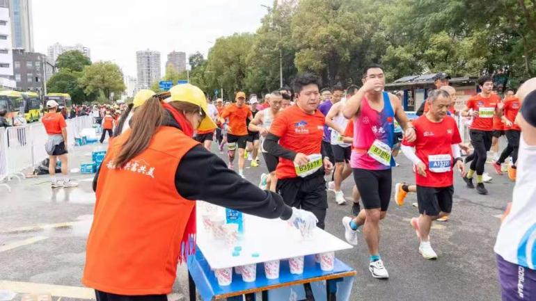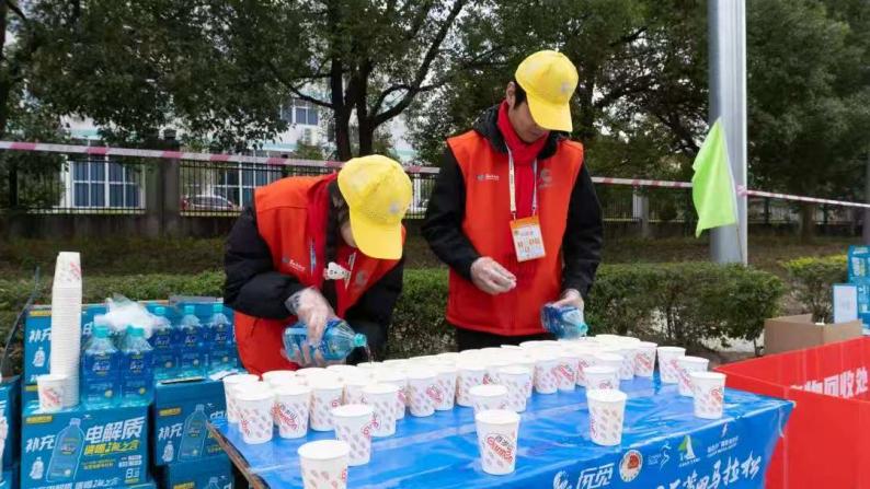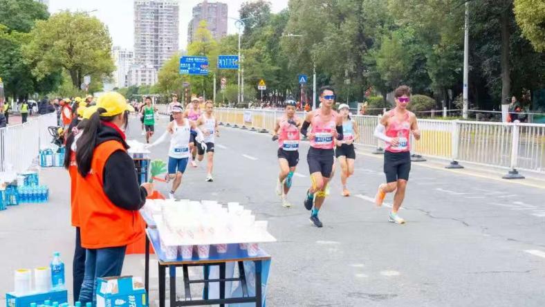 饮水饮料站:每2.5公里设置一处,志愿者两两一组实现快速补水。一声声“水在这里!”“加油!”伴随着递出的杯影,成为选手途中最美的节奏。