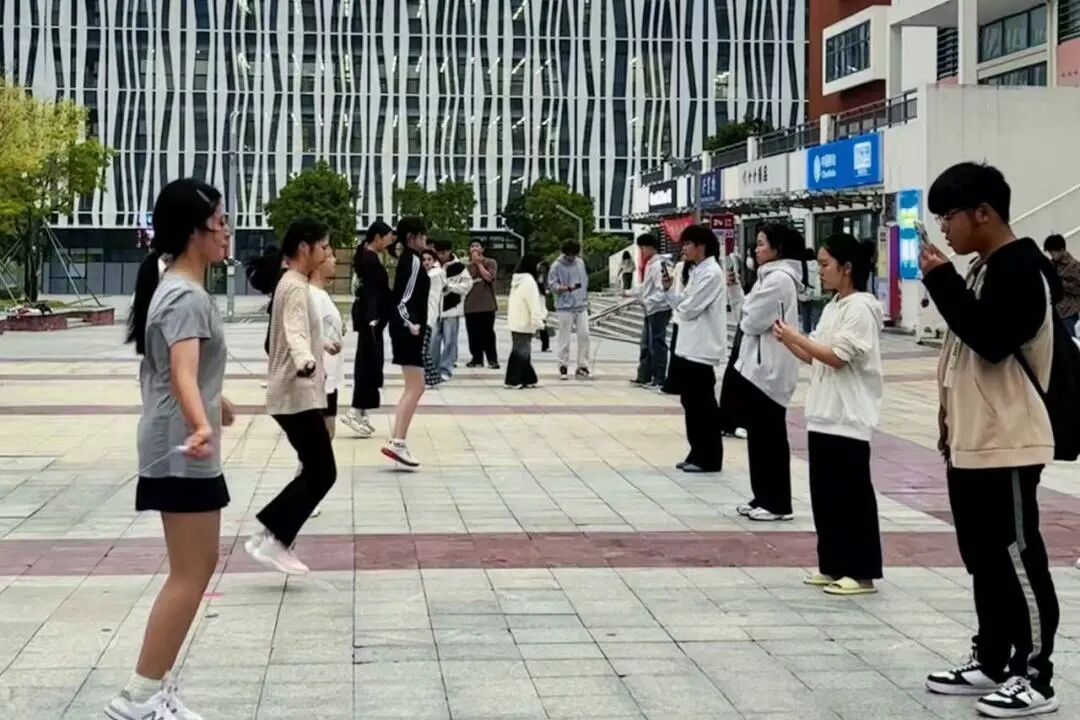 绳索翻飞如银龙,选手们脚步轻盈如燕。团队配合默契,节奏一致,绳影交错间展现着团结协作的力量与青春活力。